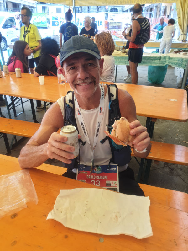 Hai ristori successivi (8, 22, 34 con solidi, in mezzo altri 2 punti con solo acqua) riempio solo le flask, una volta ho ricaricato con il mix ethic sport, ho anche bevuto 1 bicchiere di coca cola