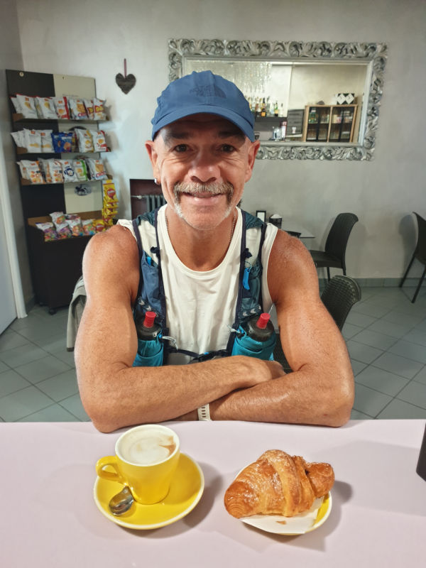 Al primo ristoro dopo 8 km ricarico le flask e mangio 2 fette di crostata, non ho resistito